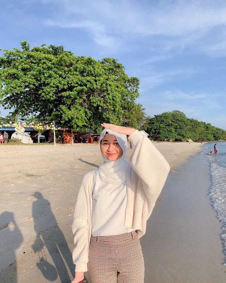 Girls, look dres ini adalah sling dress atau dress tanpa lengan. Kalian dapat memadukannya dengan T-shirt sebagai inner dari dress floral ini nih girls! Kalian juga bisa menambahkan aksesoris seperti topi dan kacamata. Stunning abis yaa girls look ini…
